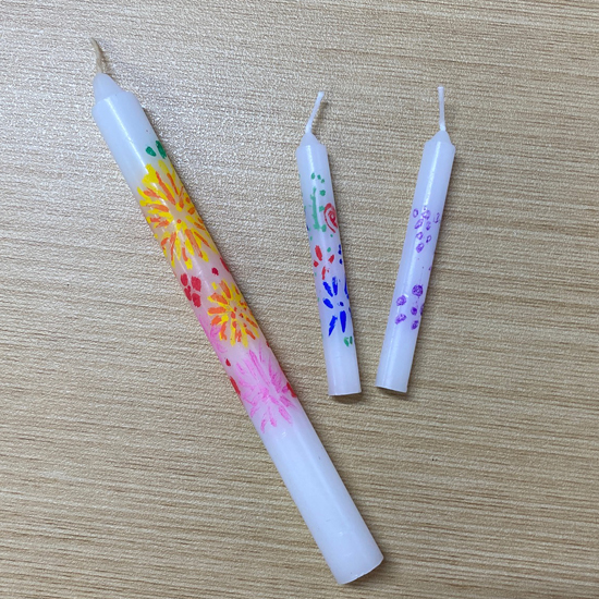 また、お彼岸前ということもありポスカでろうそくに絵付けをする「てづくりろうそく」もご用意しています。