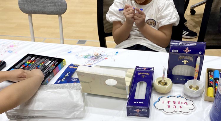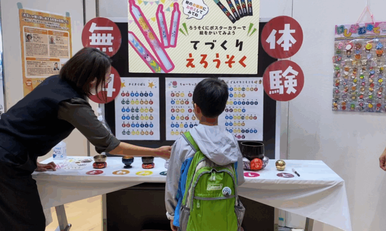 ろうそくの絵付け体験も、子どもたちに人気でした。